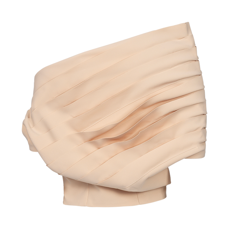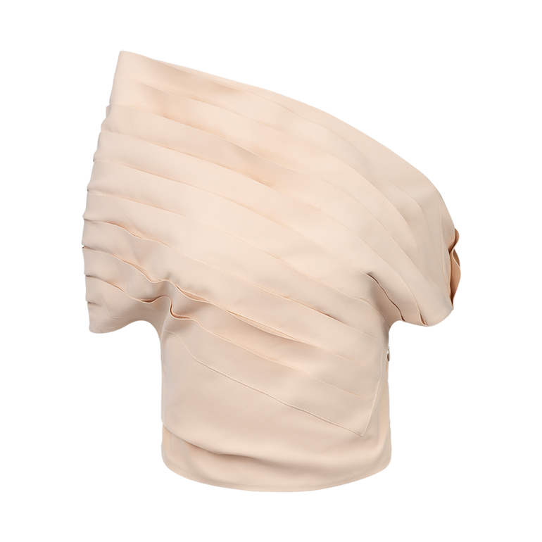 One-shoulder top with asymmetric neckline, paneled construction and back zip closure.