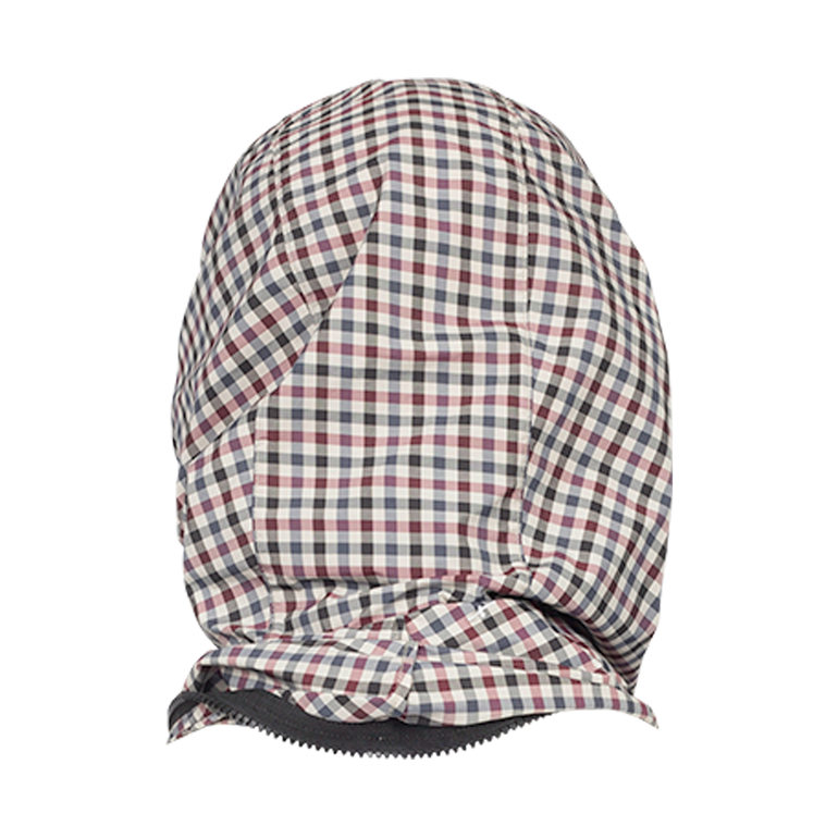 Draped scarf hood with zipped hood and adjustable drawstring.