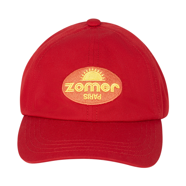 Six-panel baseball cap with Zomer patch and adjustable strap.
