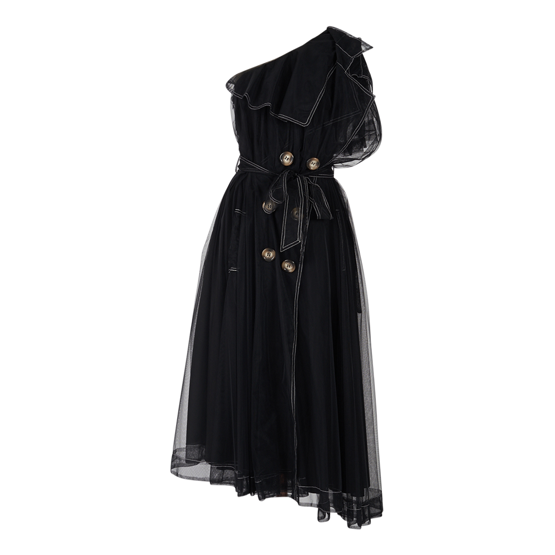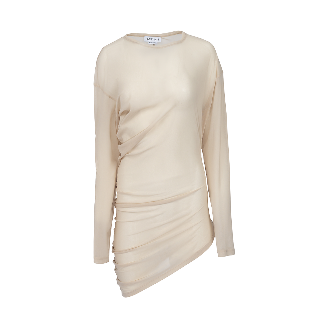 Best known for ready-to-wear with dramatic tulle details, Milan-based brand Act N°1 offers a distinct lineup of deconstructed skirts, sheer layered shirts, and heavily ruffled blazers. Founder and creative director Luca Lin draws on his Chinese heritage and Italian upbringing to inform experimental designs rich in multicultural references.