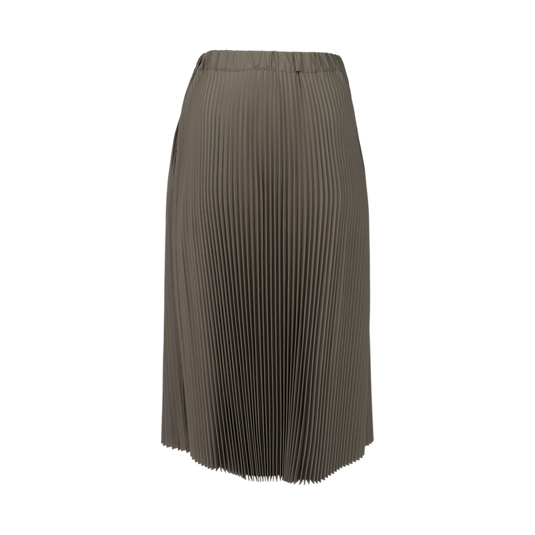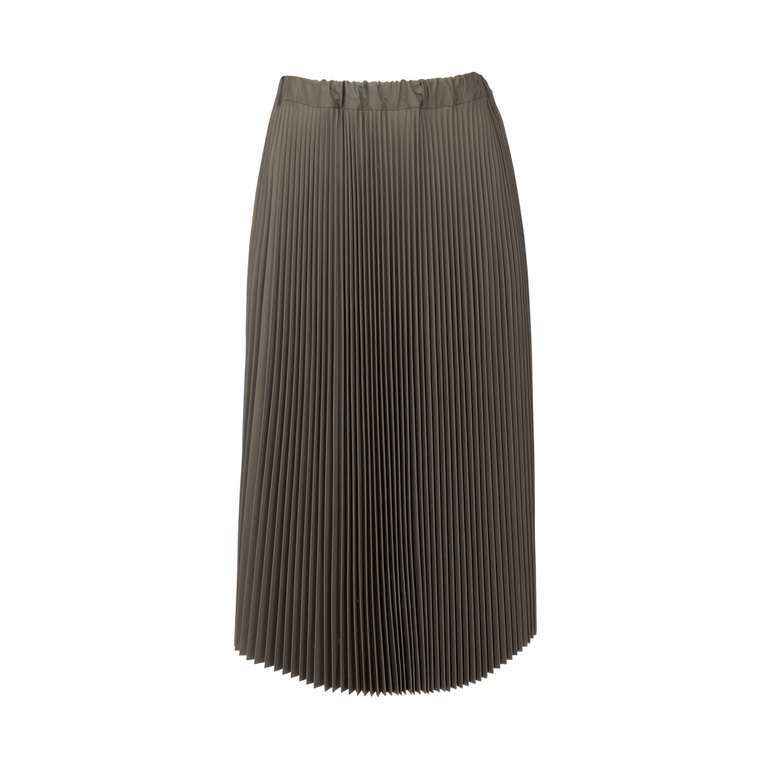 Pleated midi skirt with elasticated waistband and slightly asymmetrical hem.