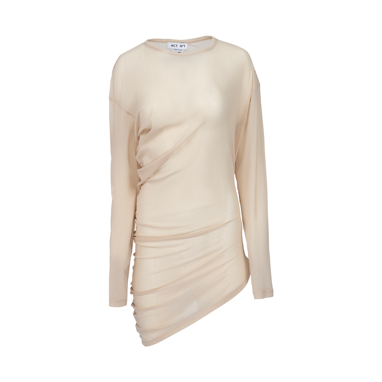 Sheer Draped Long Sleeve Top