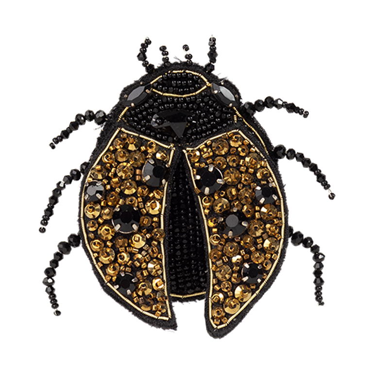 Beetle-shaped brooch with bead embellishments.