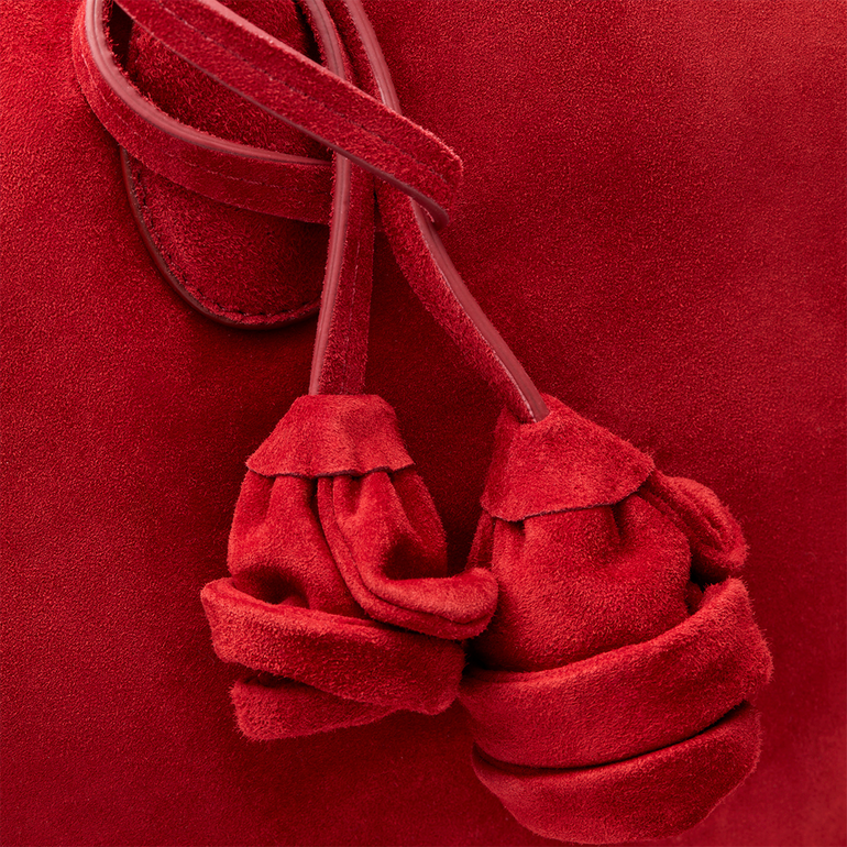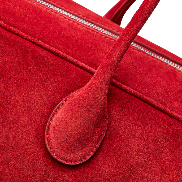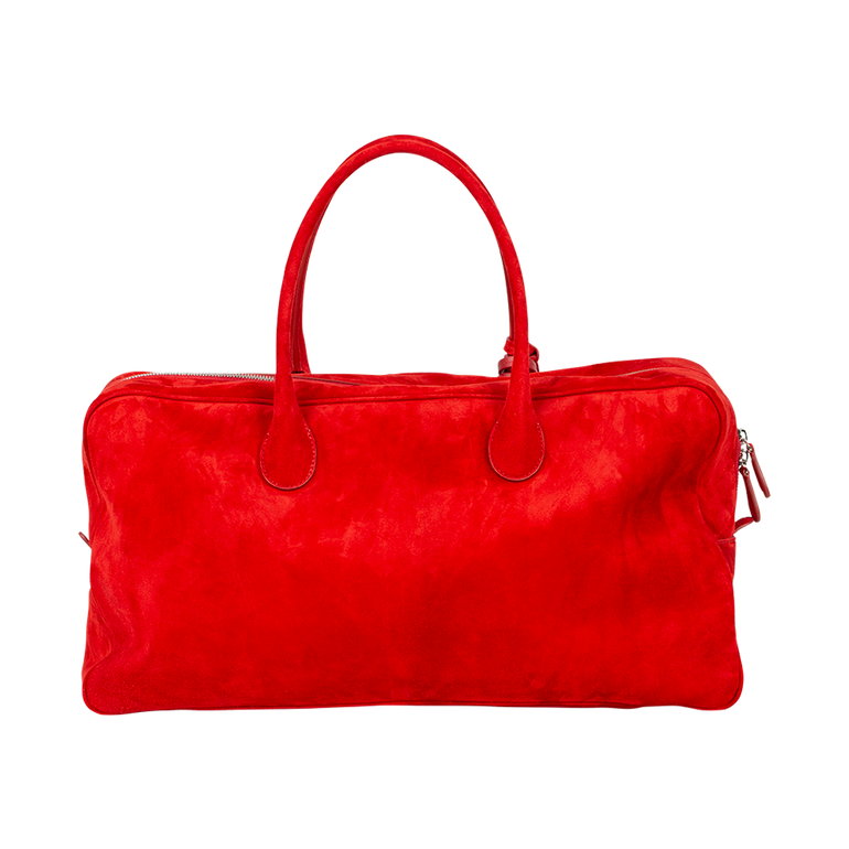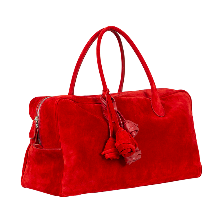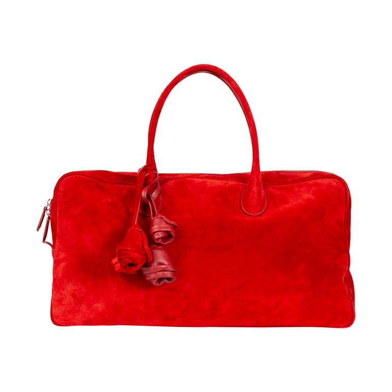 Bag with double top handles, zip closure and detachable flower charm. Approx. 9.8"H x 18.5"W x 6.7"D.