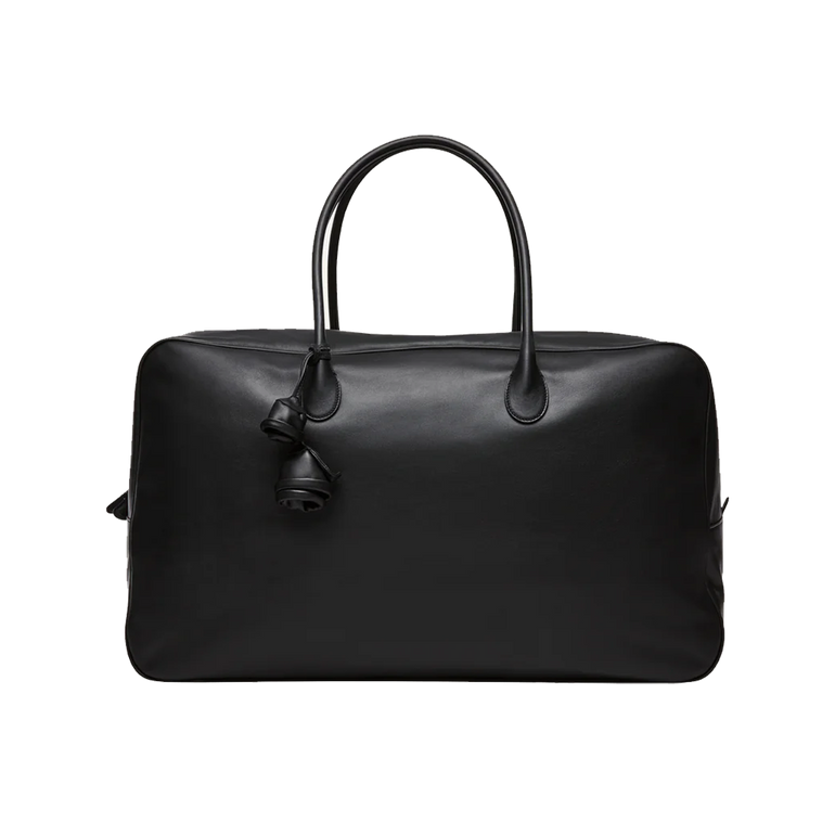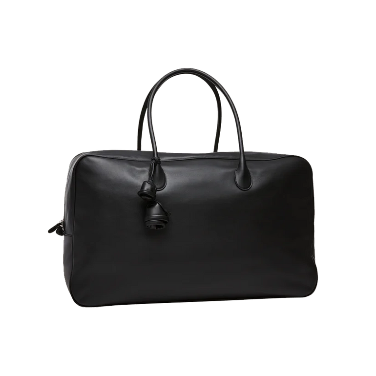 Travel bag with detachable flower charm at double top handle and zip closure. Approx. 14.6"H x 23.6"W x 6.7"D.