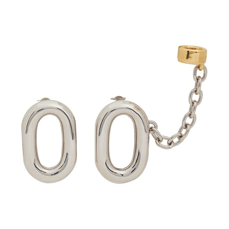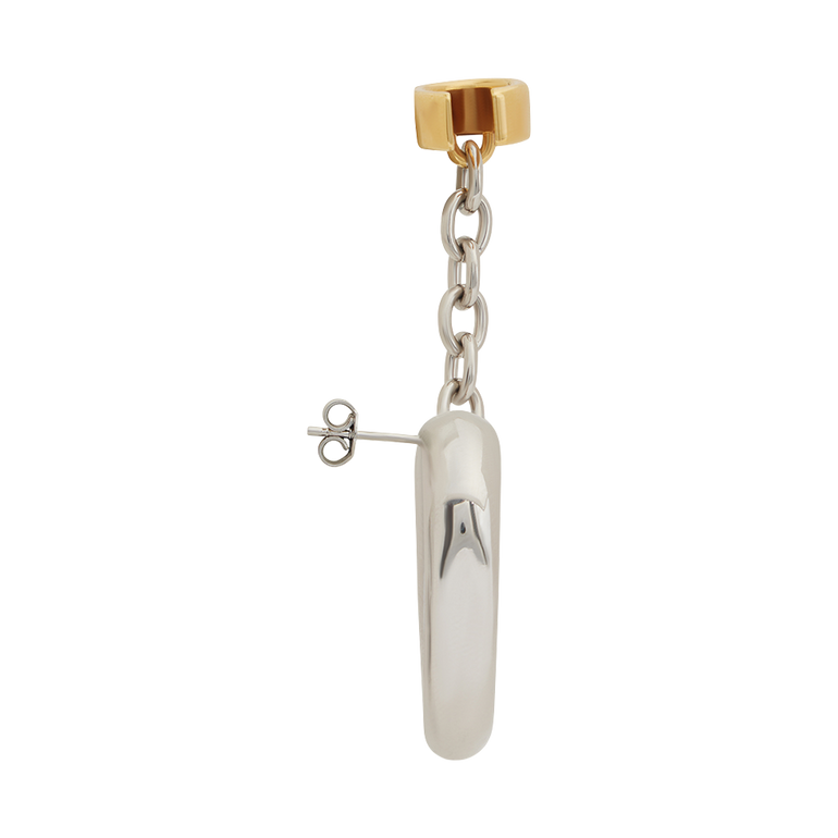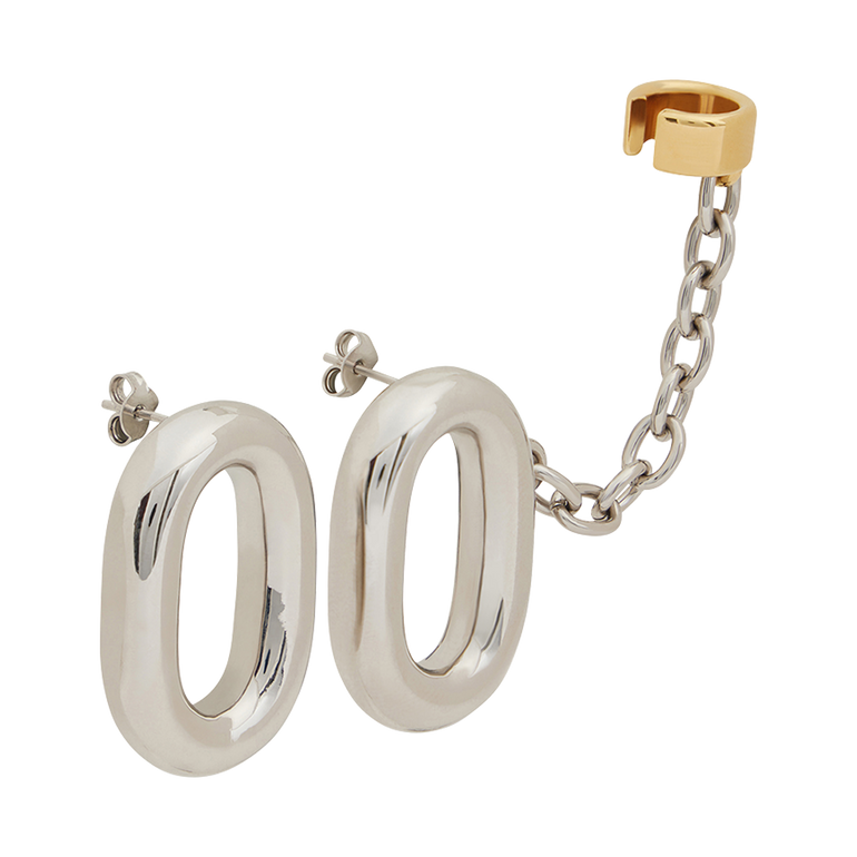 Asymmetrical earrings with the XL link shape, ear cuff on one side and butterfly clasp. For pierced ears.