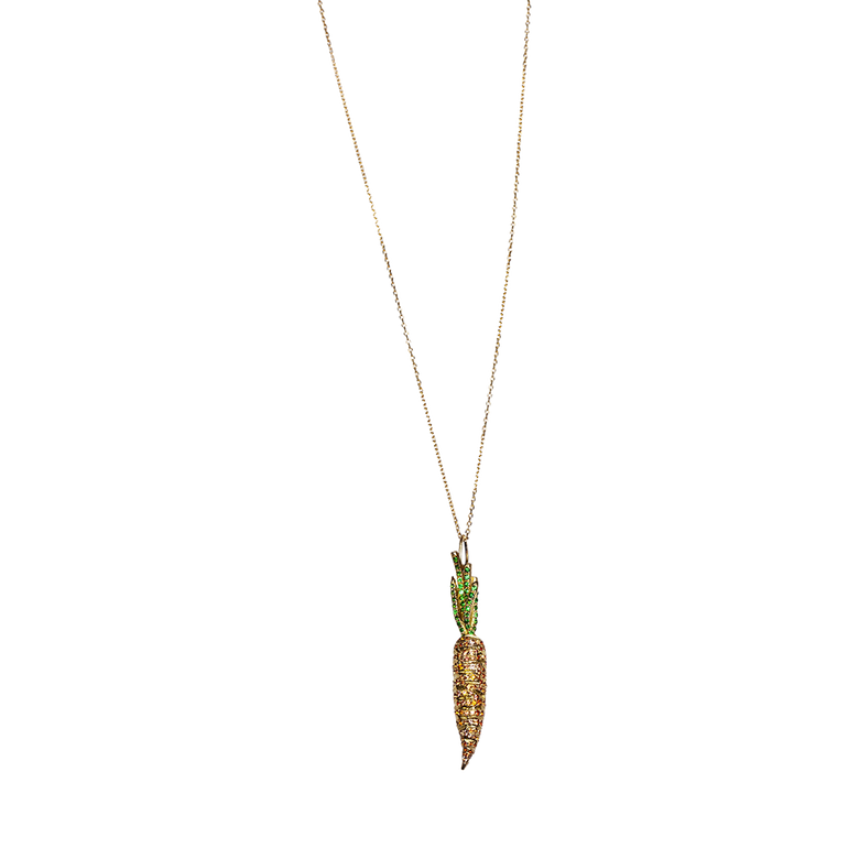 Carrot pendant necklace with 1.2 CT. T.W. orange sapphire and 0.4 CT. T.W. tsavorite.