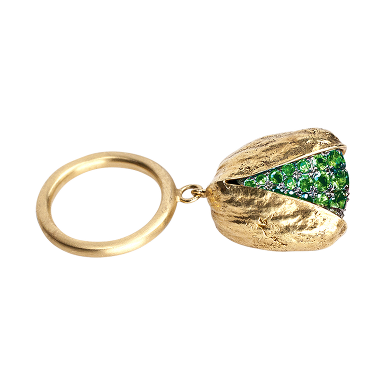 Ring with 4.2 CT. T.W. tsavorite in pistachio design.