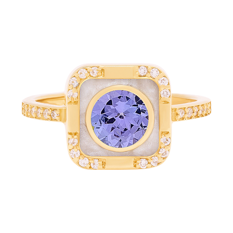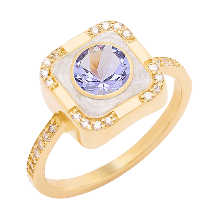18-karat yellow gold/tanzanite/diamond/enamel.