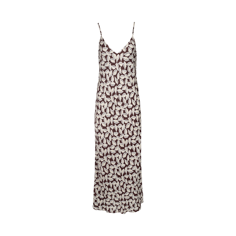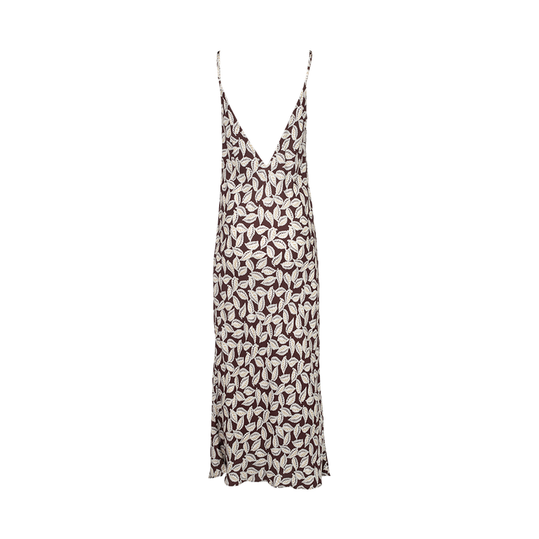 Slip dress in leaf-stamp pattern, designed in homage to J.M. Barrie's 1904 text "Peter Pan."
