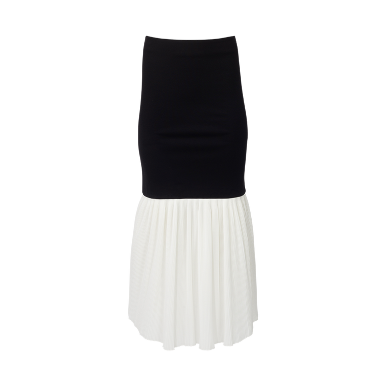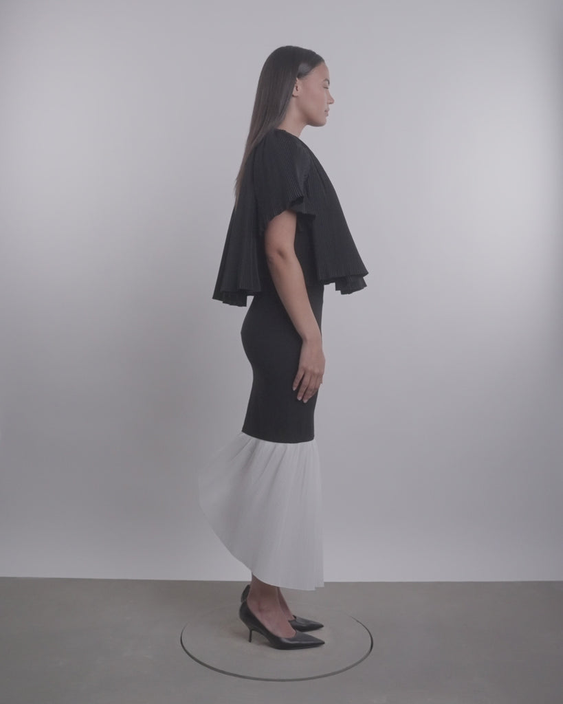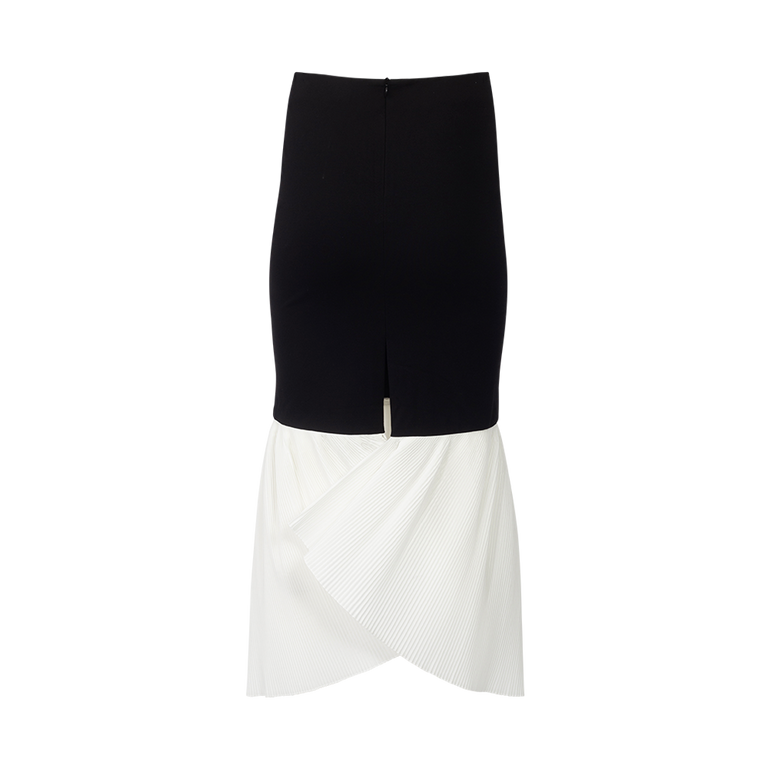 Peplum maxi skirt with concealed back zip and center slit.