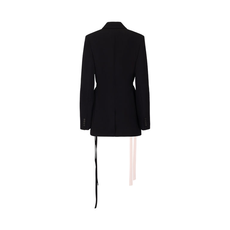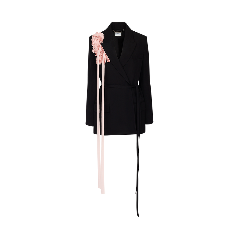 Double-breasted blazer in relaxed silhouette with pink ribbon appliqué flowers. Lined.