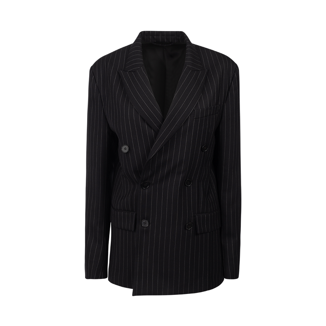 DURAN LANTINKPinstripe Double-Breasted Black Blazer
