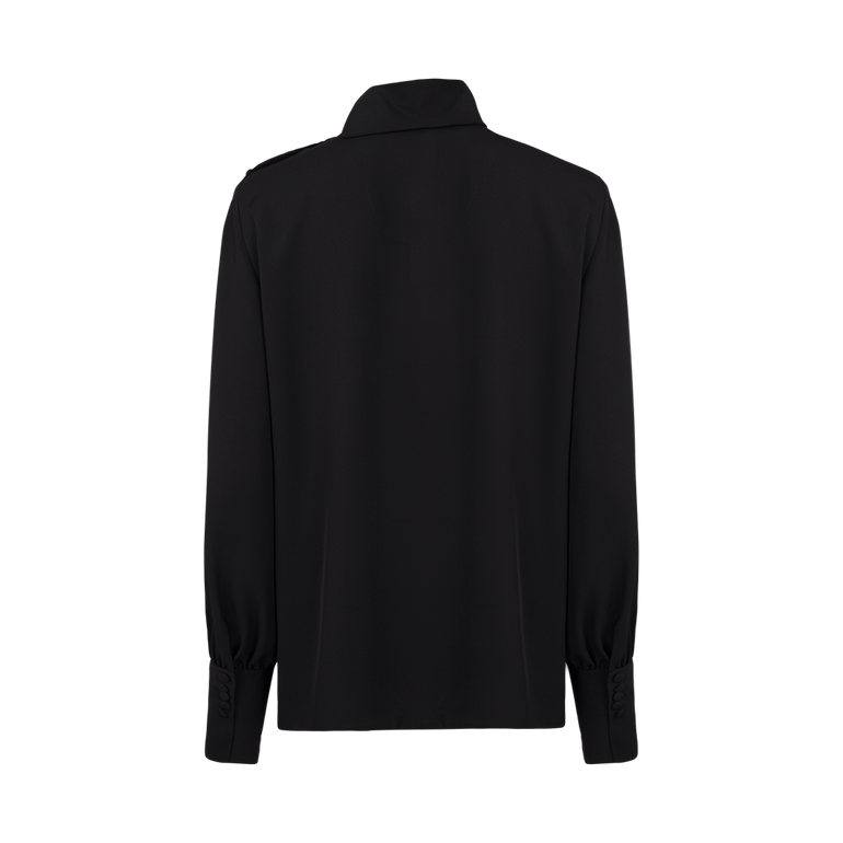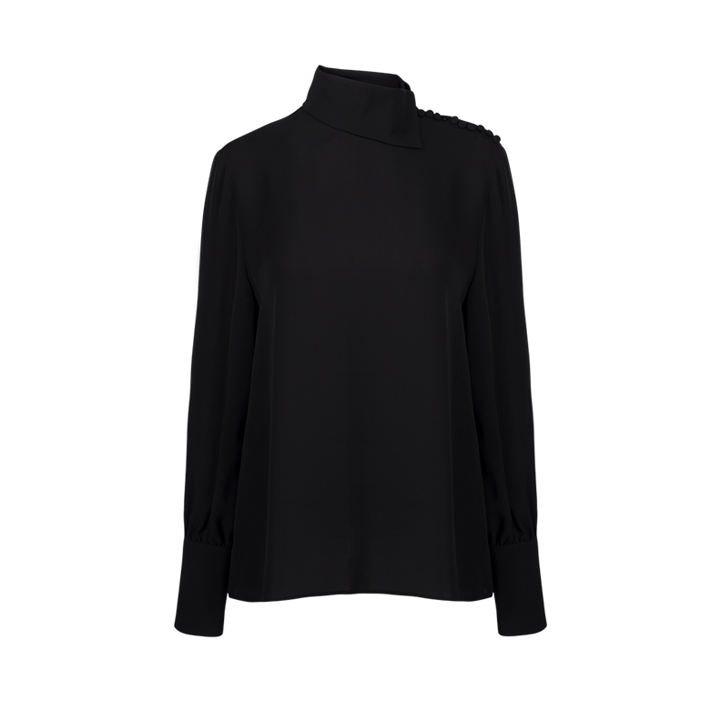 Shirt with mock neckline, button detailing and long sleeves with button cuffs.