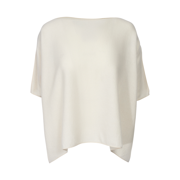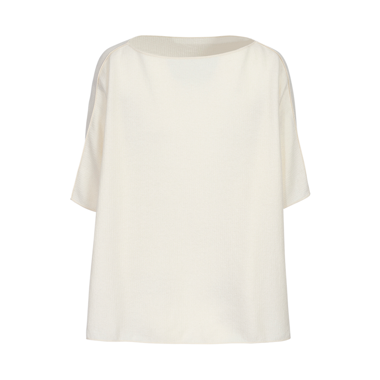 T-shirt with boat neckline and short sleeves in batwing silhouette.