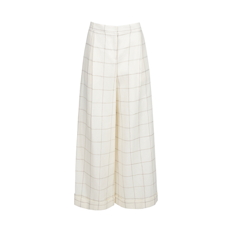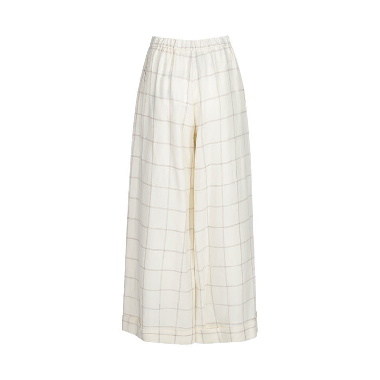 Wide-leg pants with partial elasticated waistband and cuffed hems.