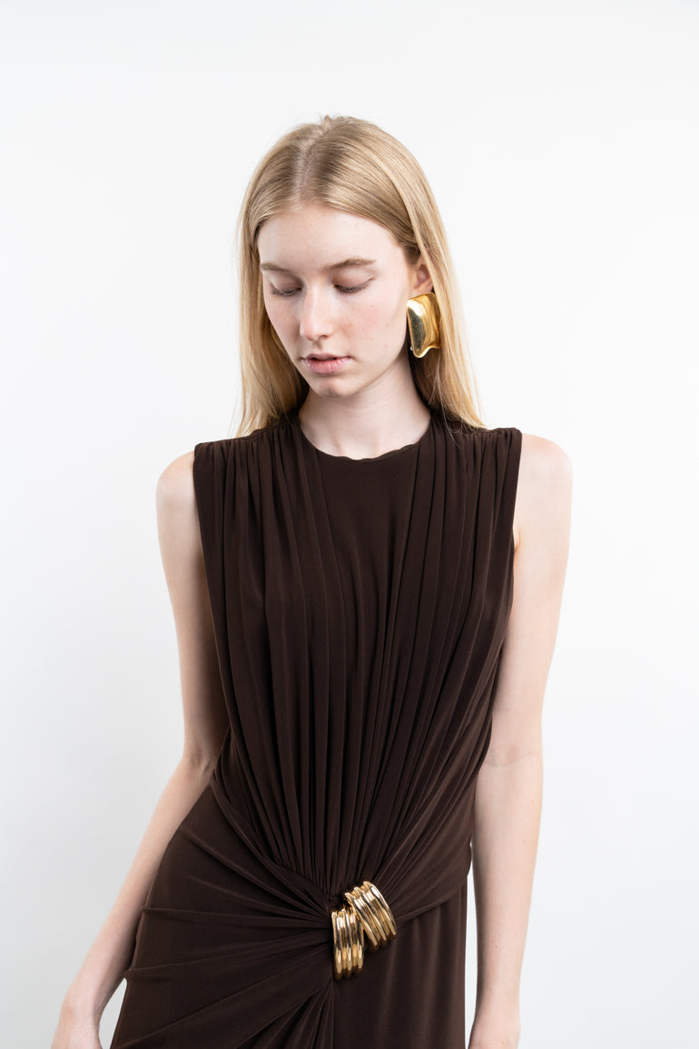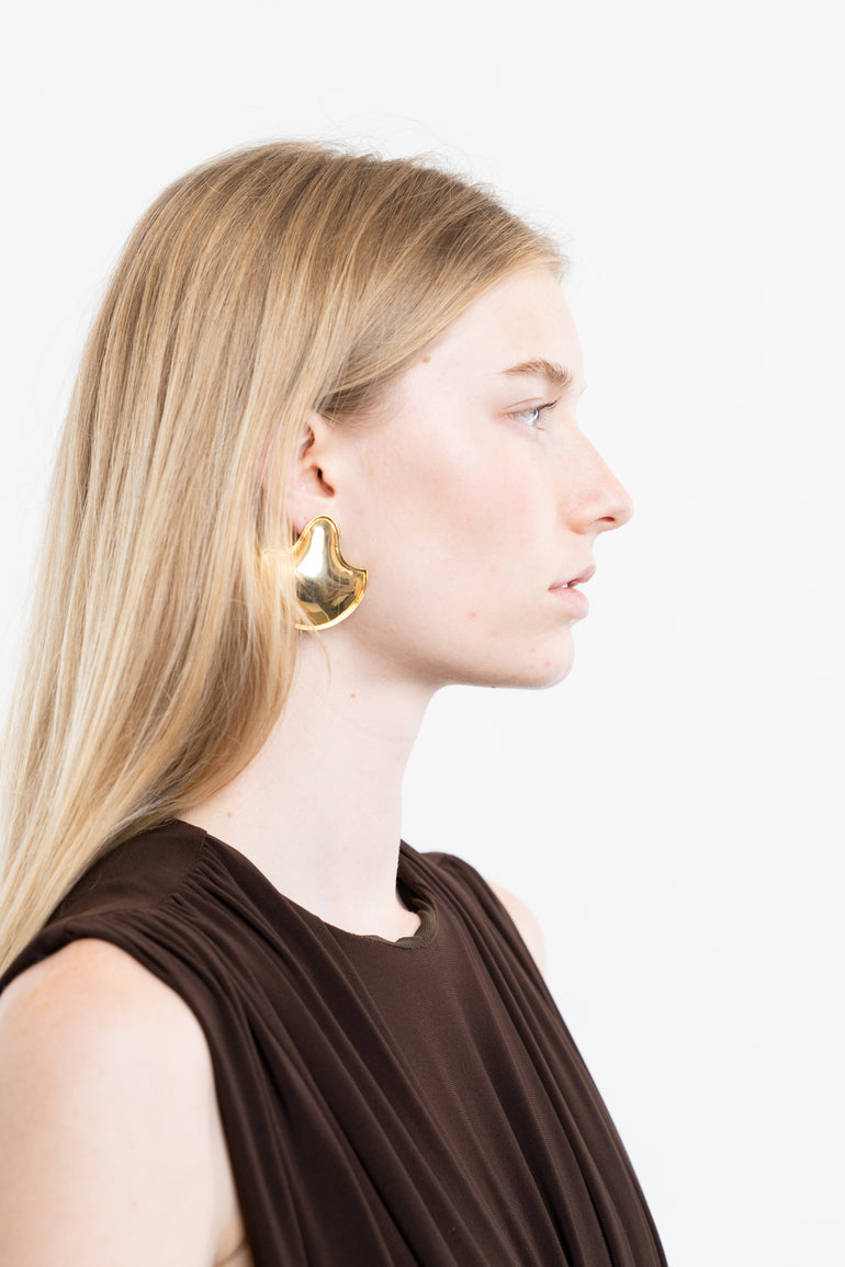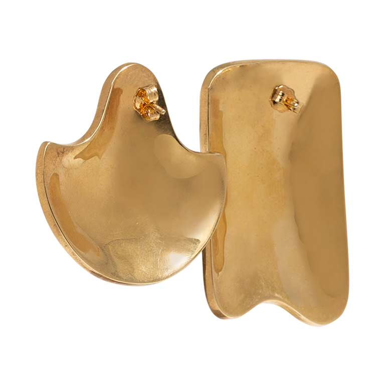 Mismatched earrings in sculptural design. Approx. 2.5" drop.