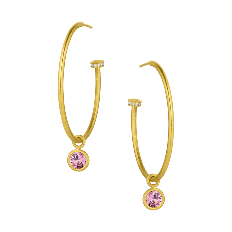 Earring charms featuring approx. 2 CT. T.W. malaya garnet in chunky bezel setting.