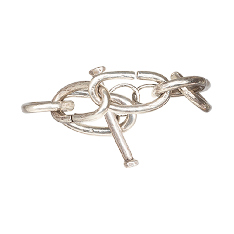 Handmade bracelet with chain links in three different shapes and toggle closure. Approx. 9"L.