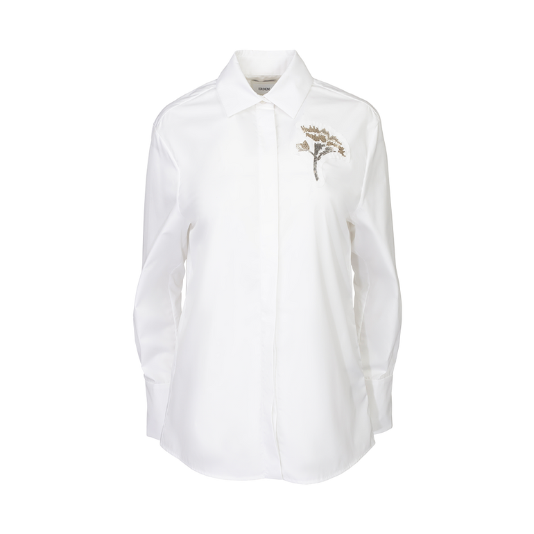 Long-sleeved shirt with shirt collar, straight fit, concealed center-front button placket and oversized floral embroidery.