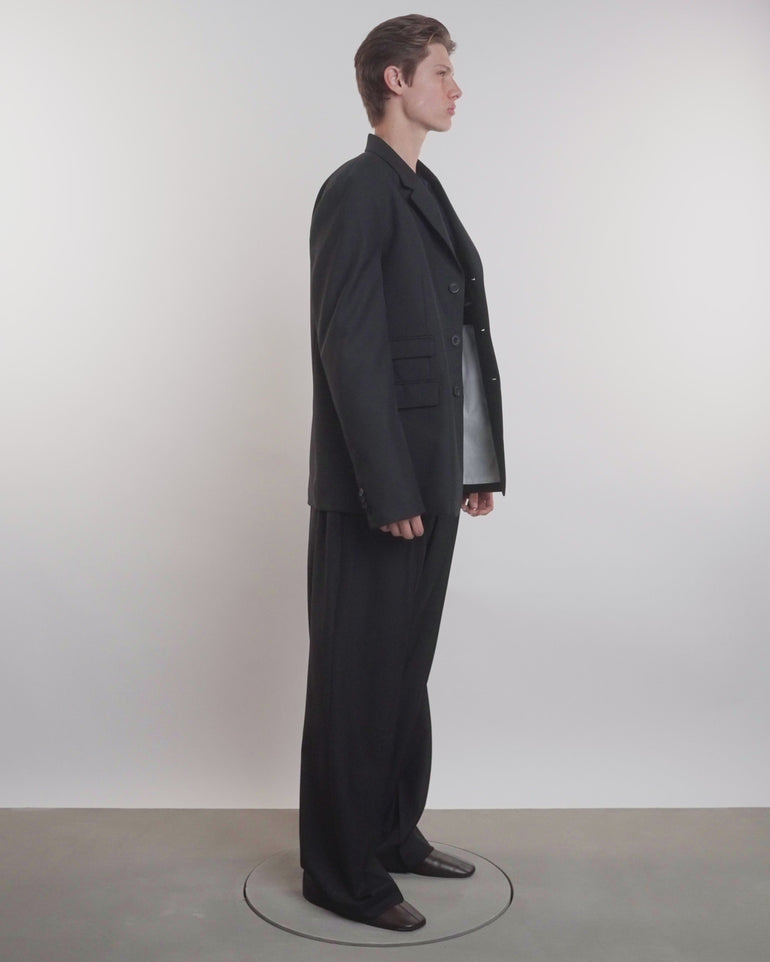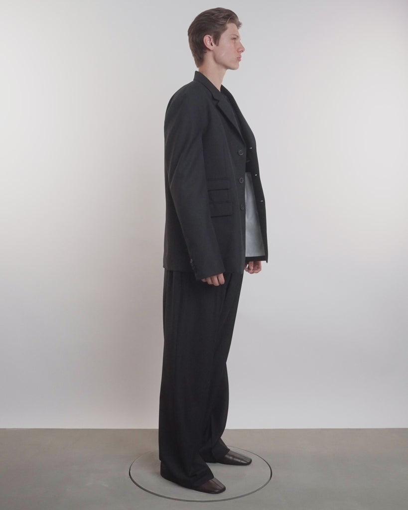 Black single breasted jacket.