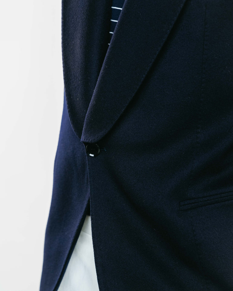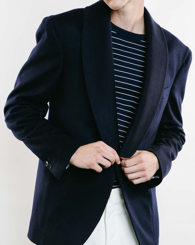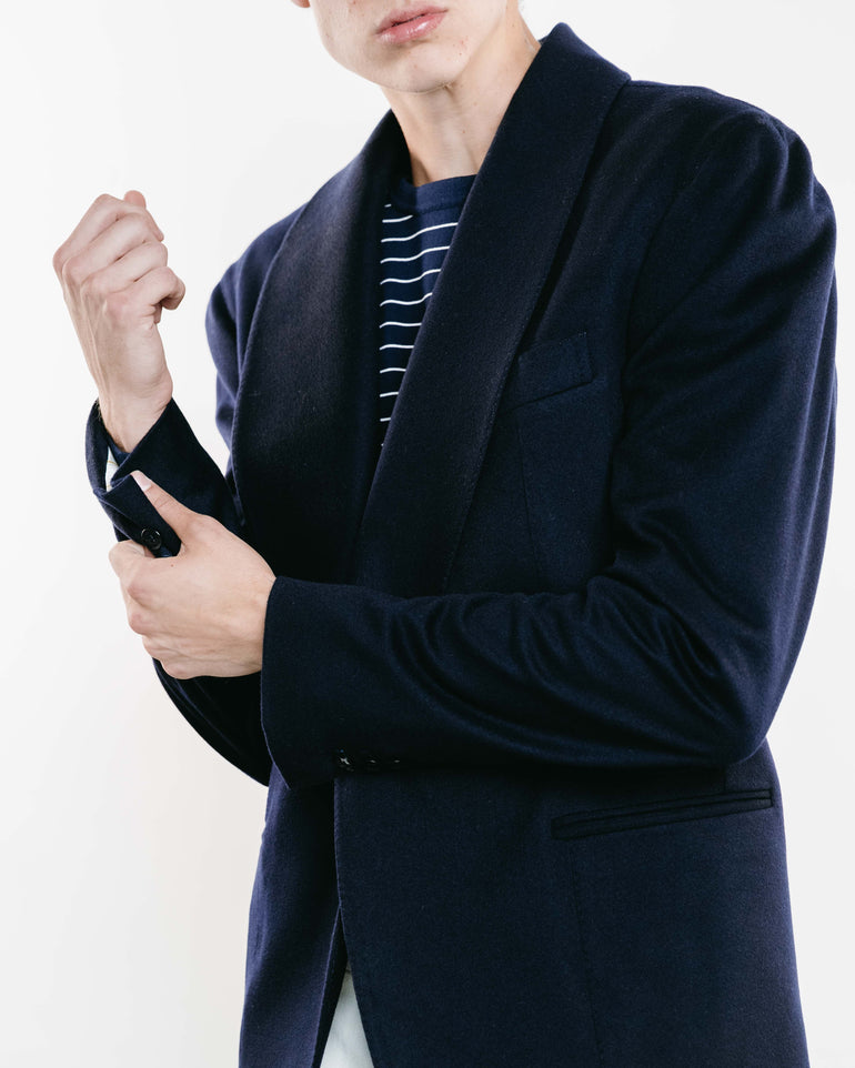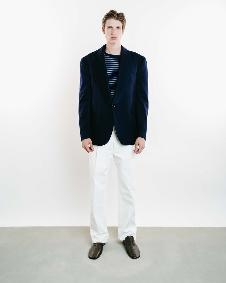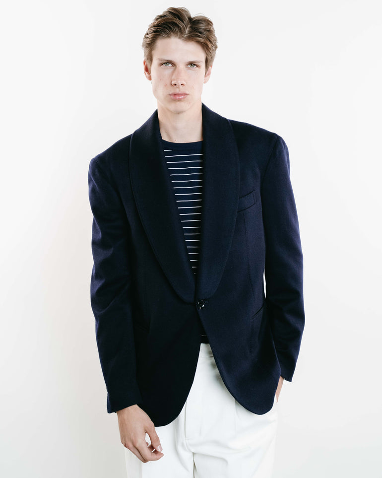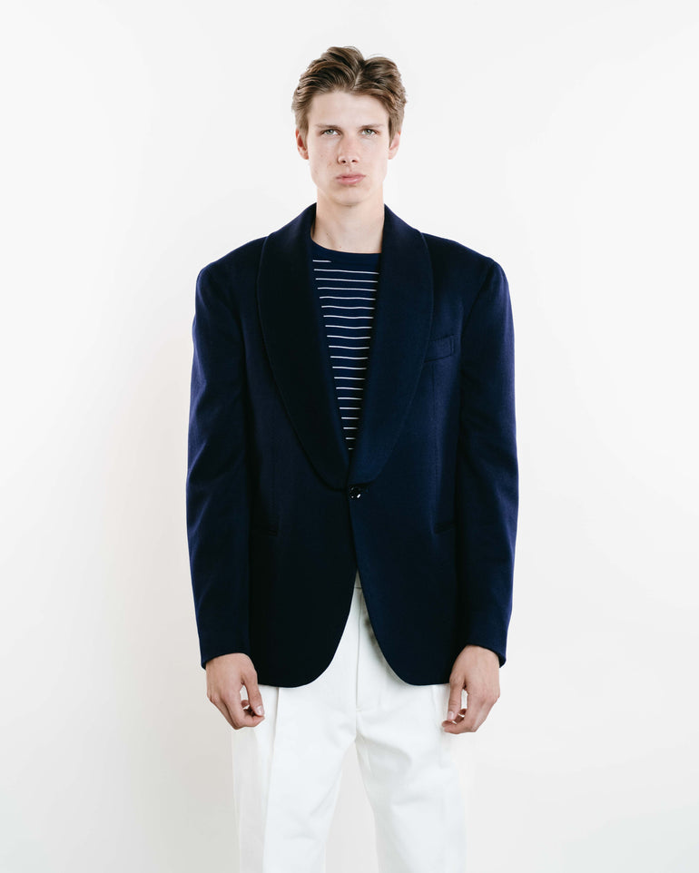 Blazer cut in a sharp single-breasted silhouette with a shawl collar and one button closure.