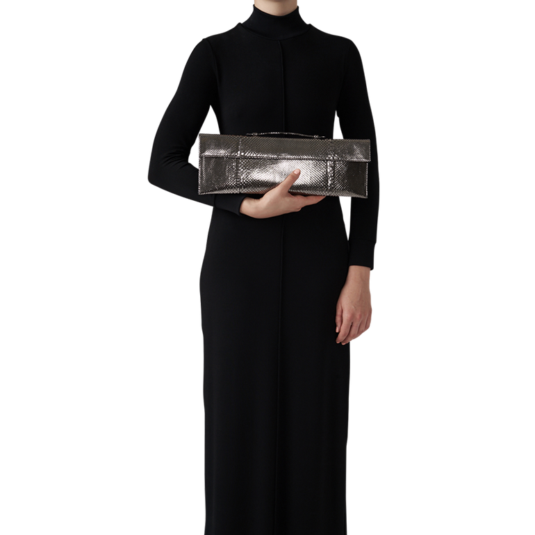 Black Gloss Python Tuxedo Clutch