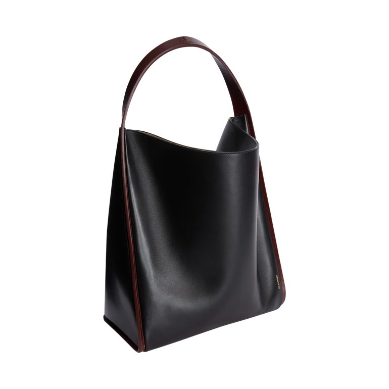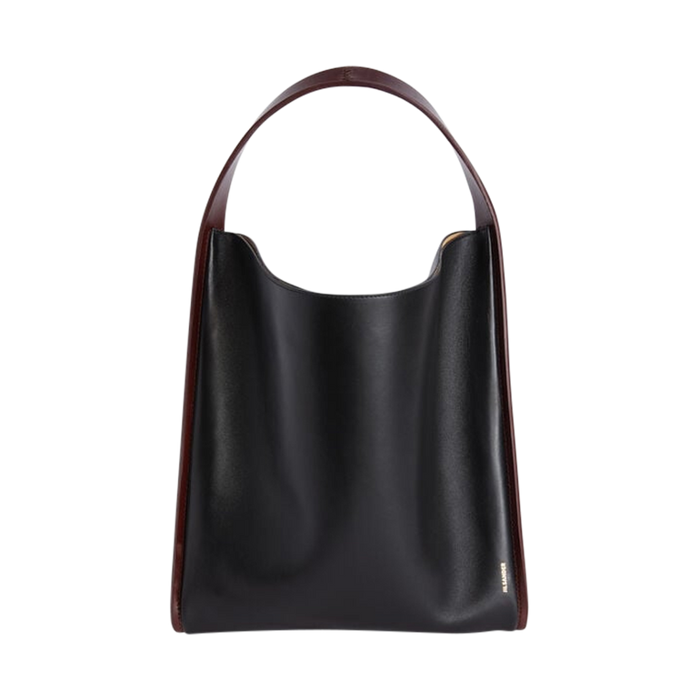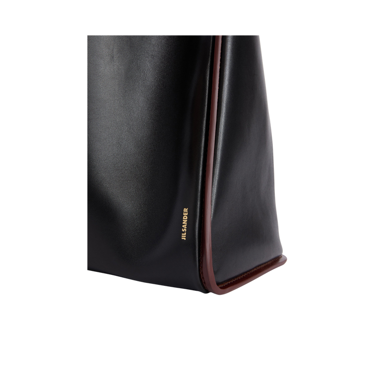 Tote bag with single top handle and contrast piping trim.