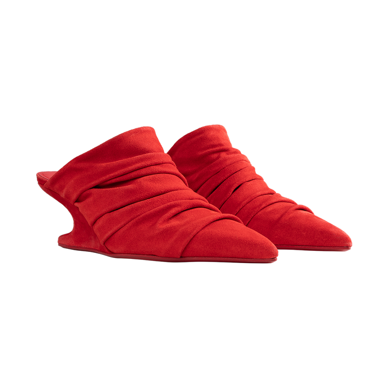 Slip-on shoes in draped design with pointed toe and 6CM cantilever heel.
