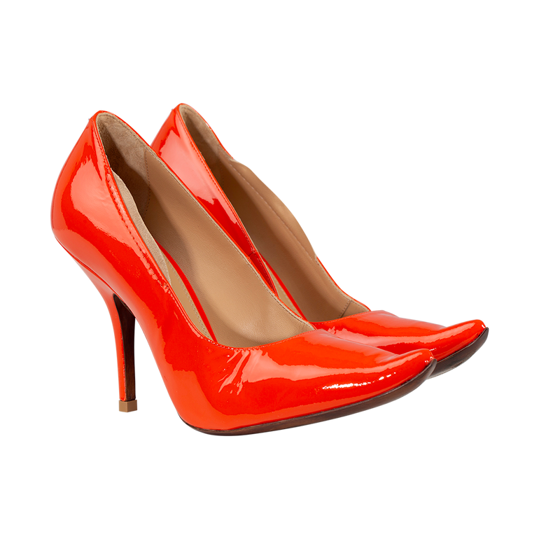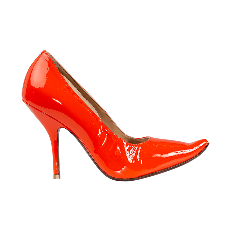 Pumps with pointed heels and hand-shaped upper with a natural upward toe crease.