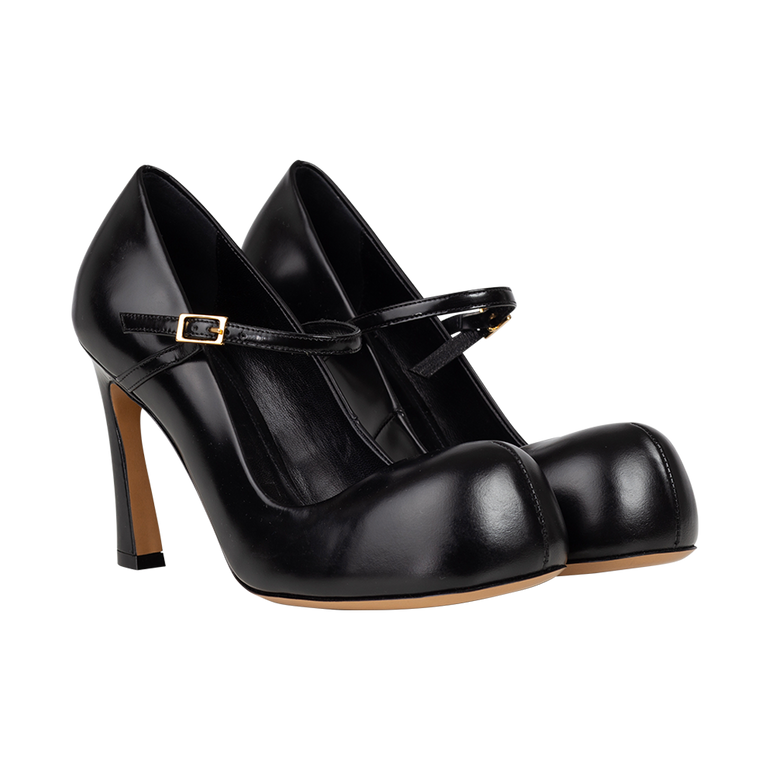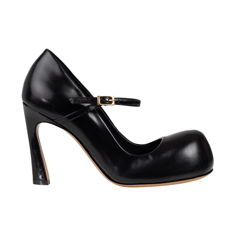 Mary Jane pumps with signature bubble toe, buckle strap and 100MM heel.