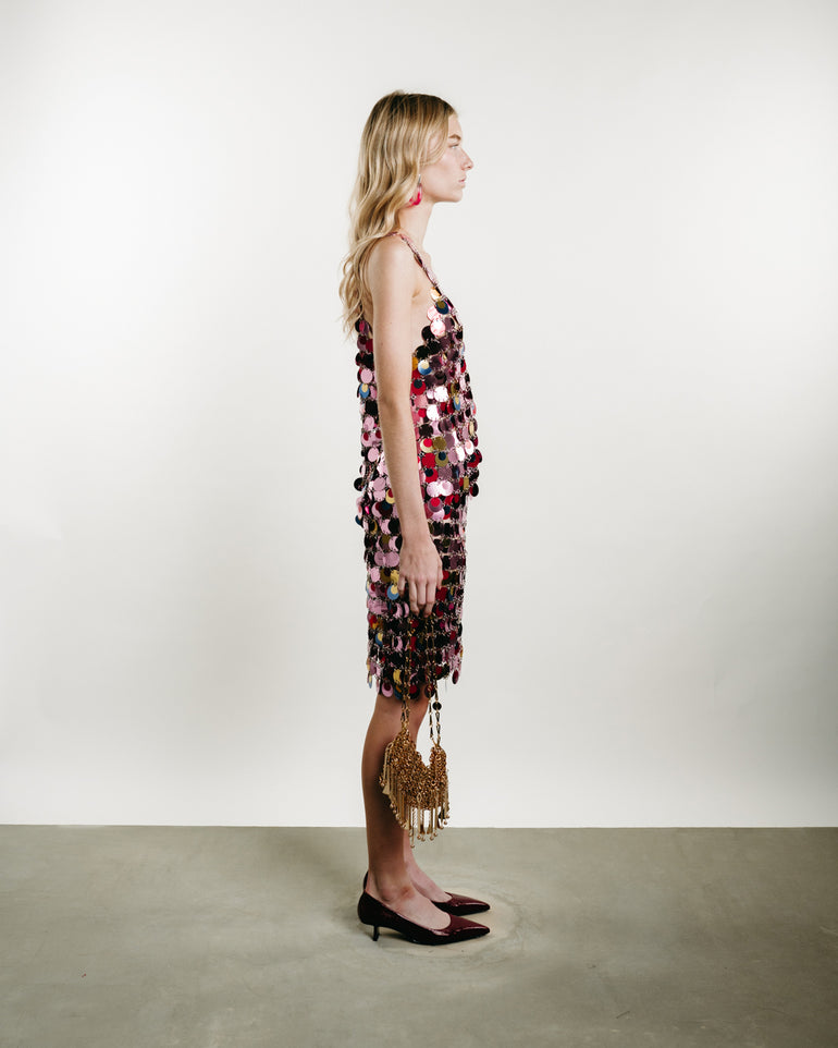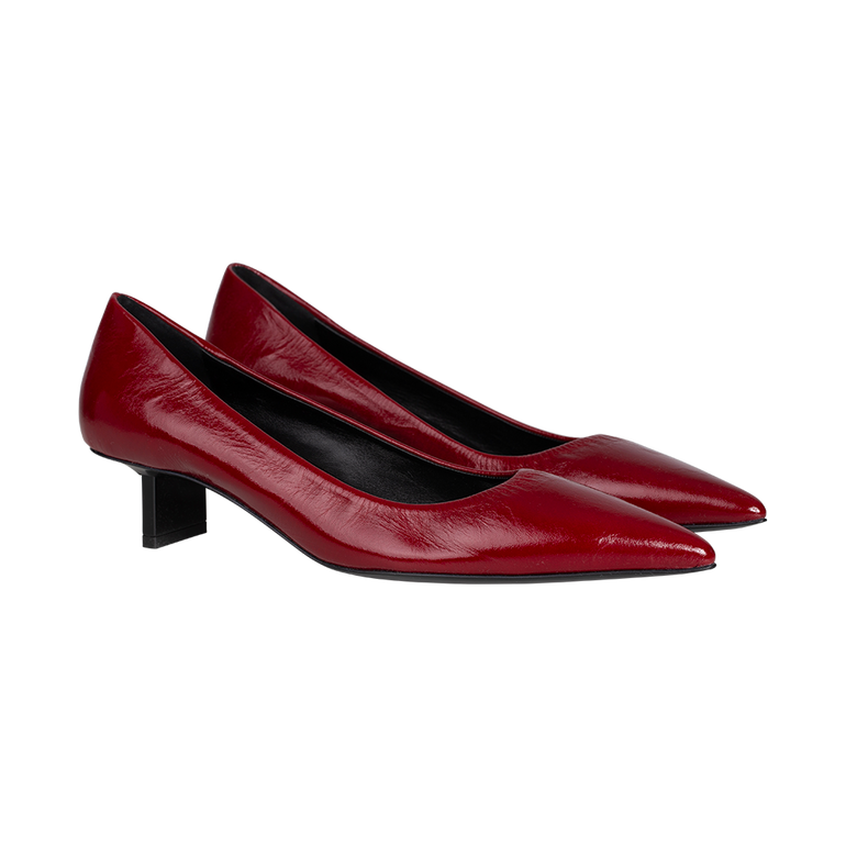 Red (Carmine red) patent leather.