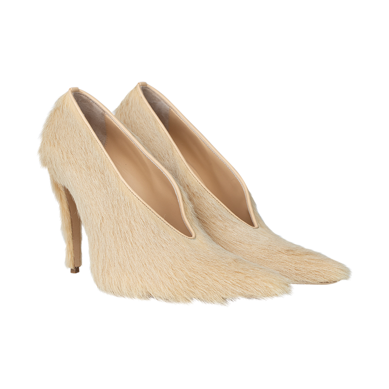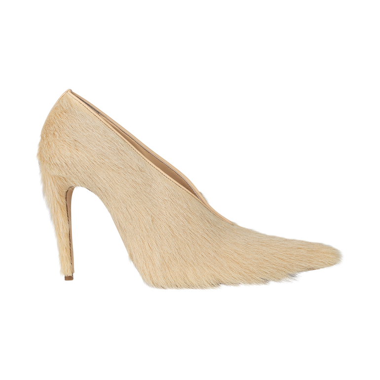 Pump with pointed toe, sharp vamp and 105MM stiletto heel.
