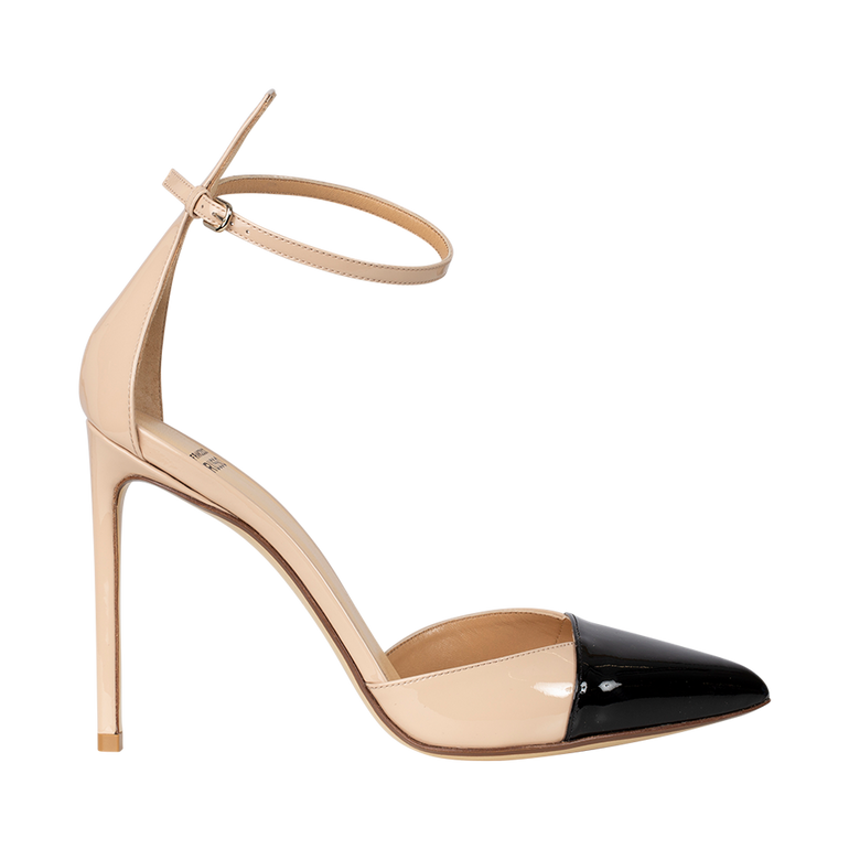 Pumps with pointed toe, buckle-fastening ankle strap and 105MM stiletto heel.