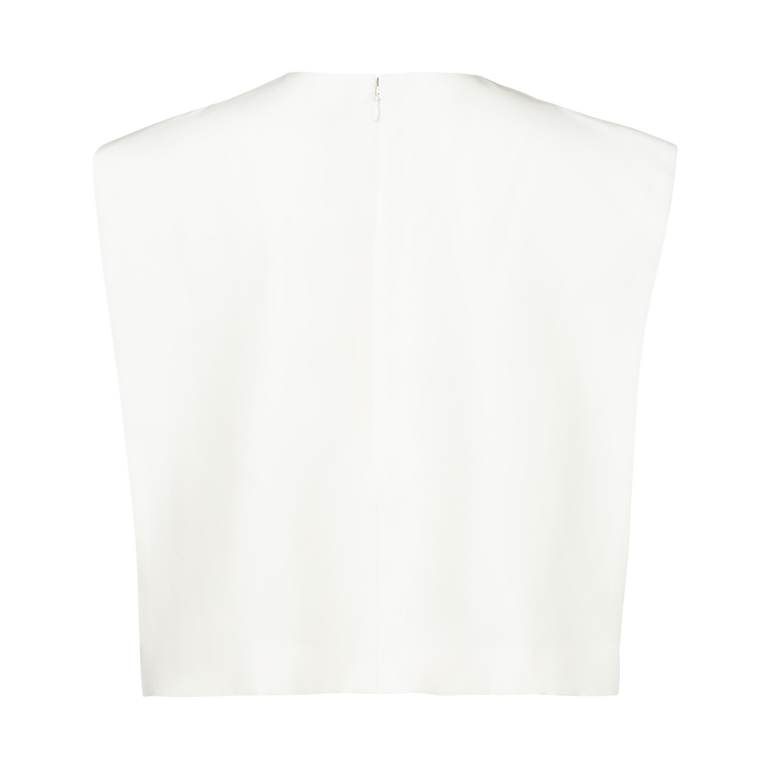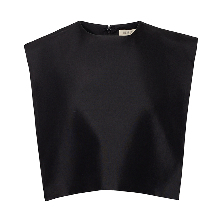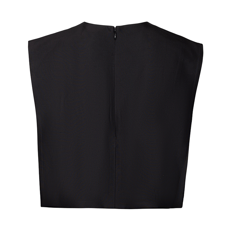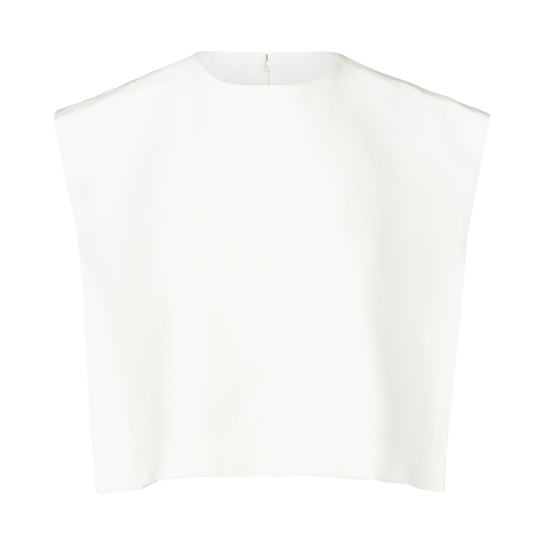 Square-shaped top with side panel inserts, crew neckline, cropped silhouette and center back zipper. Fully lined.