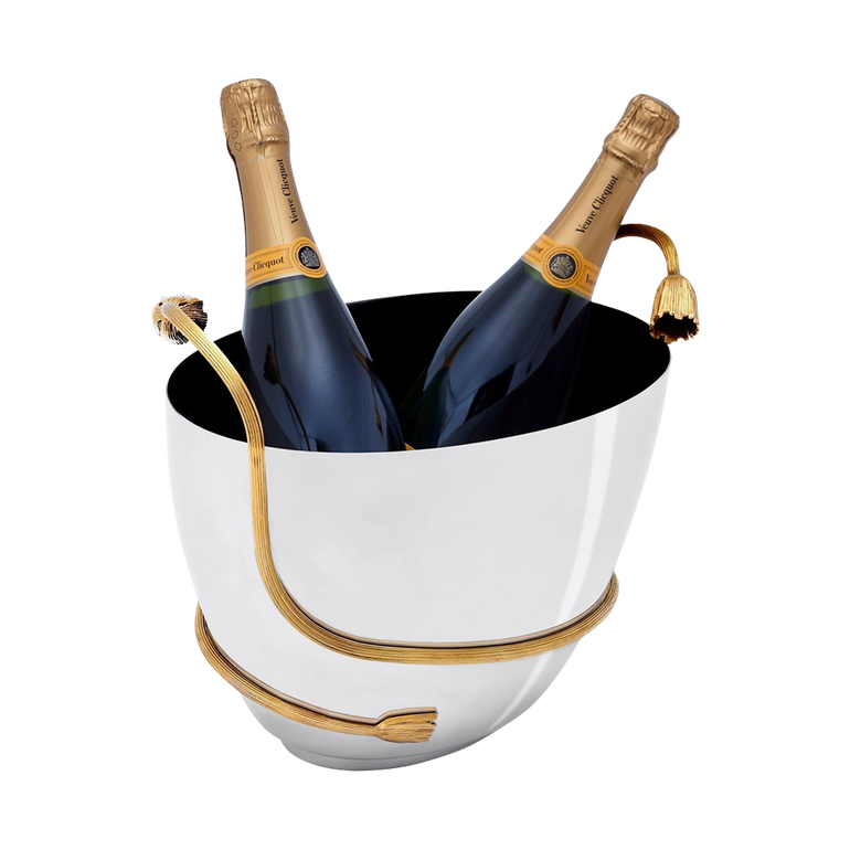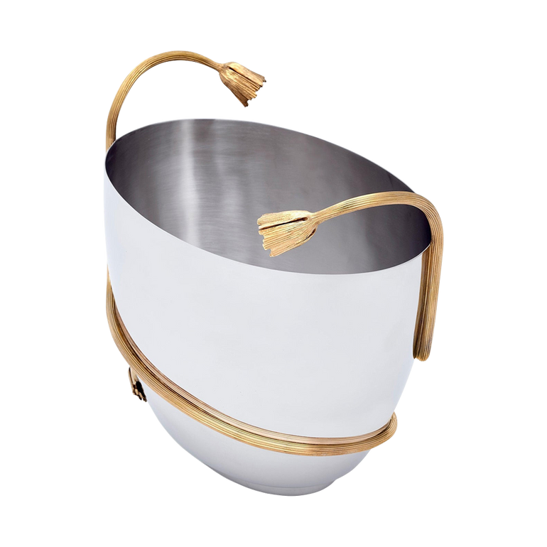 Champagne bucket featuring handforged stainless steel detail. Approx. 11.5"L x 7.5"W x 8.5"H.