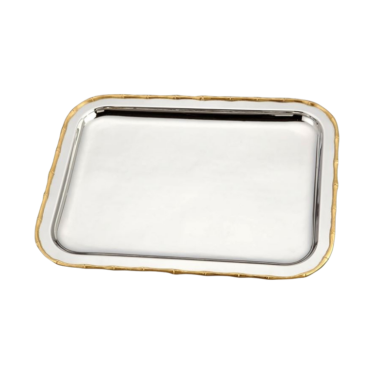 Rectangular platter featuring gold-plated accents. Approx. 15"H x 19"W.