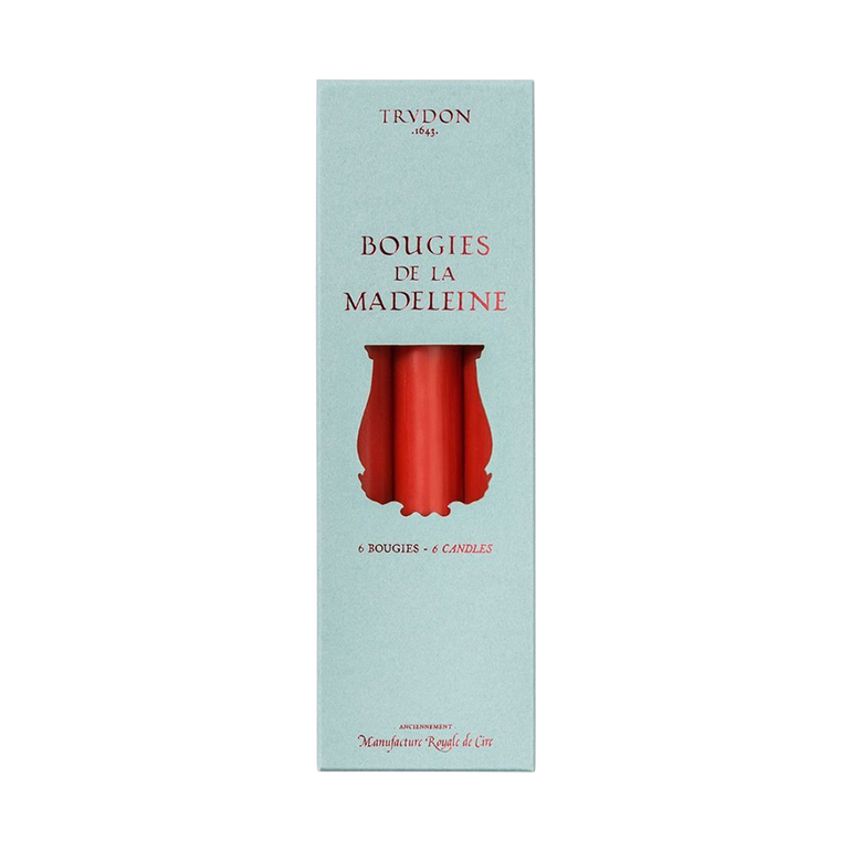 Dyed in small lots, Madeleine candles are created from high-quality wax. They are dripless and smokeless. Sold as a set of six.