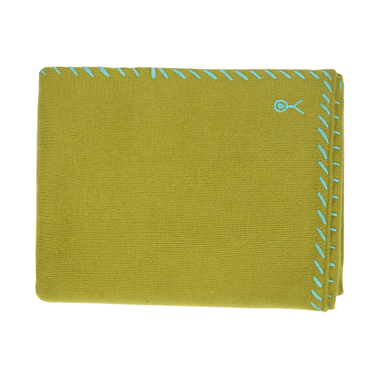 Hand-loomed throw blanket with logo accent. Approx. 86"L x 58"W.