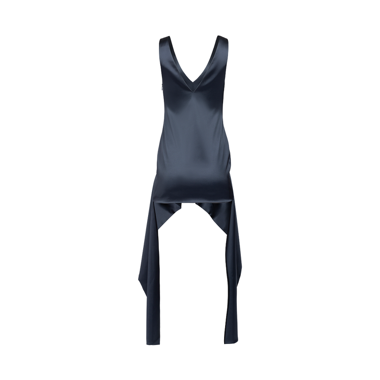 Dress with low V-neckline, draped high-low skirt and concealed zip at side. Lined.