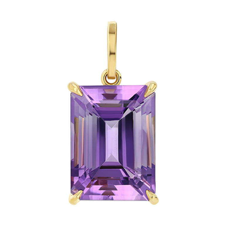 12.02 CT. emerald-cut amethyst charm with claw prong.