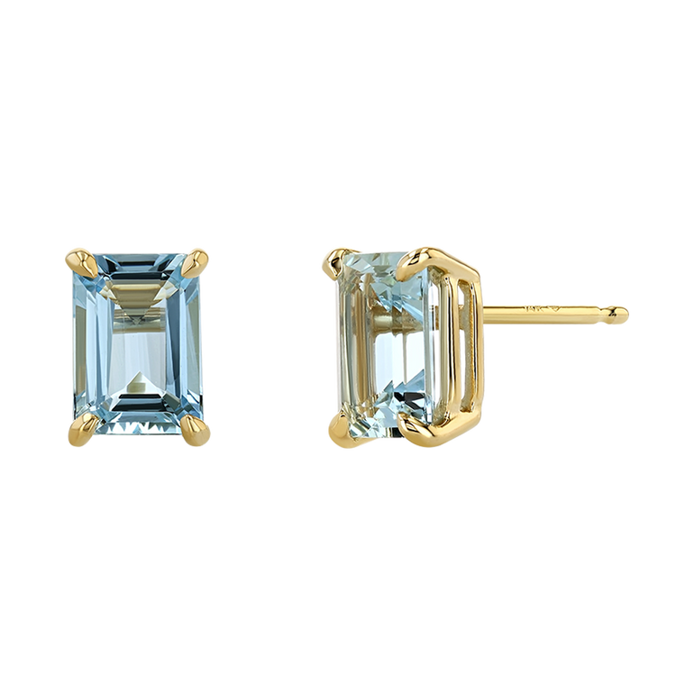 Stud earrings with 3 CT. T.W. emerald-cut aquamarine. For pierced ears.