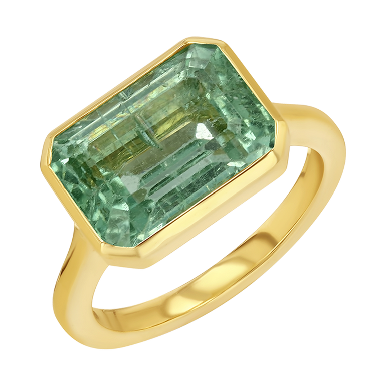 Emerald-Cut Seafoam Green Tourmaline Ring
