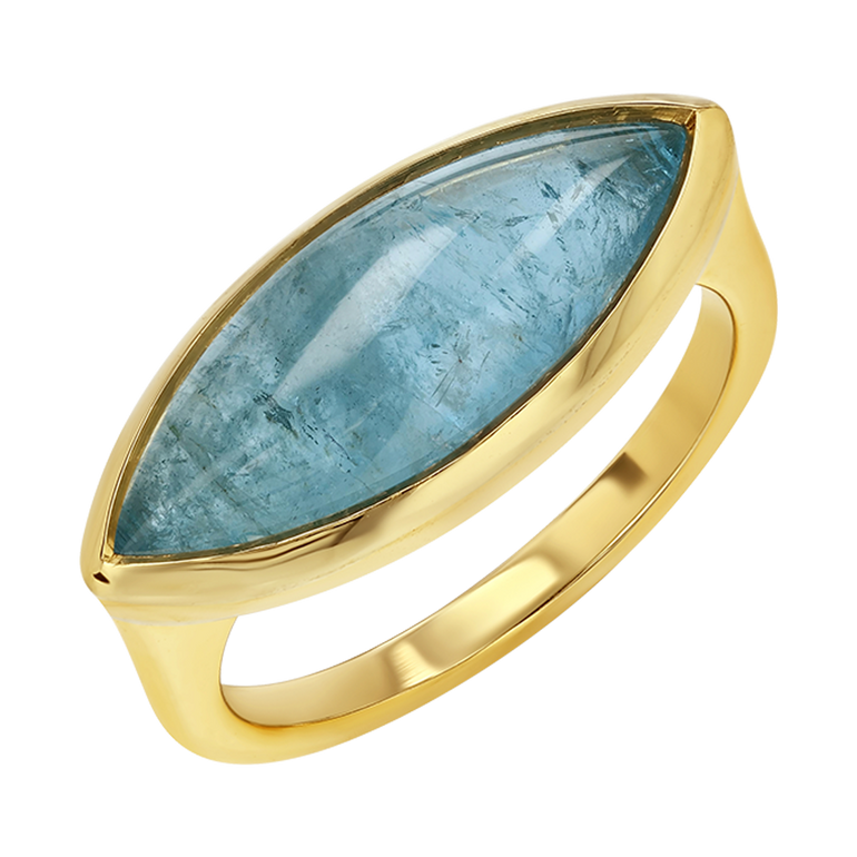 Marquise ring with 5.35 CT. cabochon-cut aquamarine center stone.