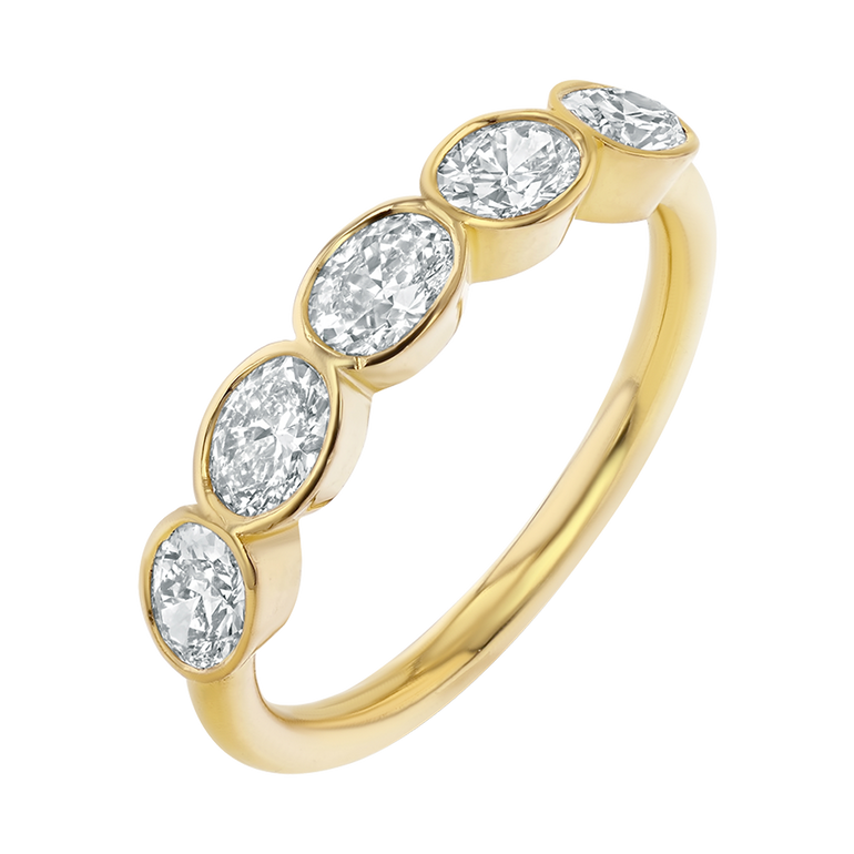 Ring with 1.00-1.09 CT. T.W. oval-cut diamonds in bezel setting.