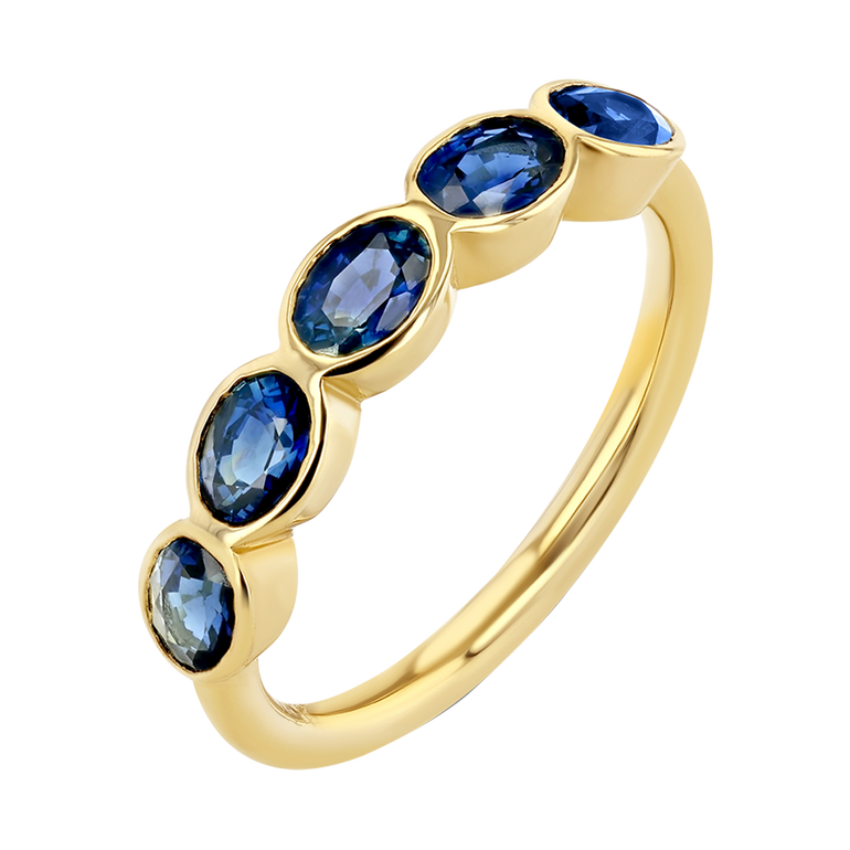 Ring with 1.00-1.10 CT. T.W. oval-cut sapphires in bezel setting.