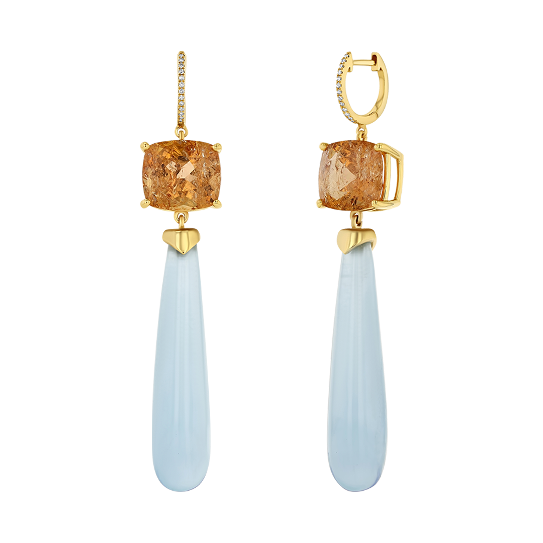 STARLINGBeryl Lemon Quartz Diamond Drop Earrings