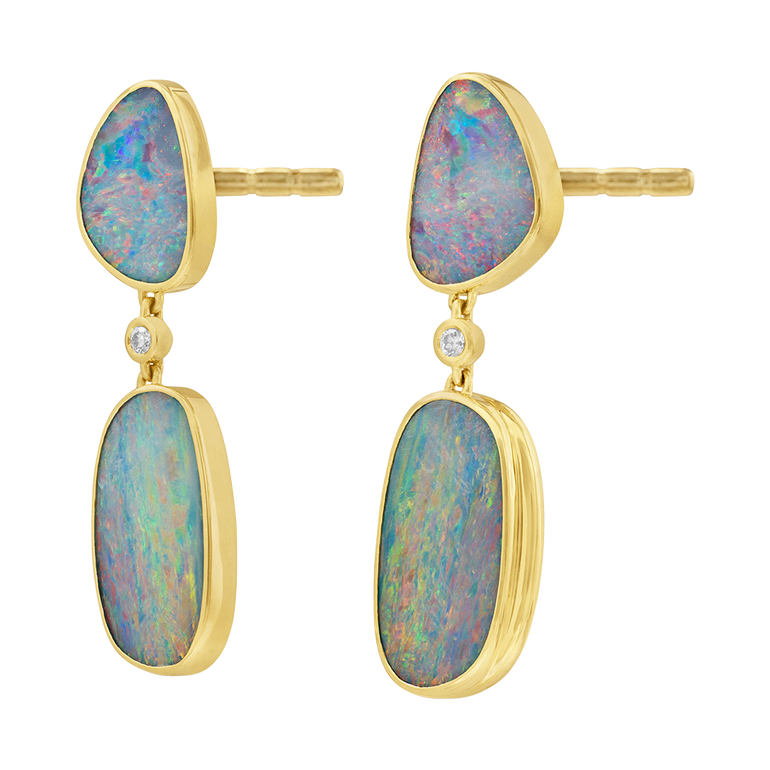 Doublet earrings with Australian opal and diamond accents. For pierced ears.
