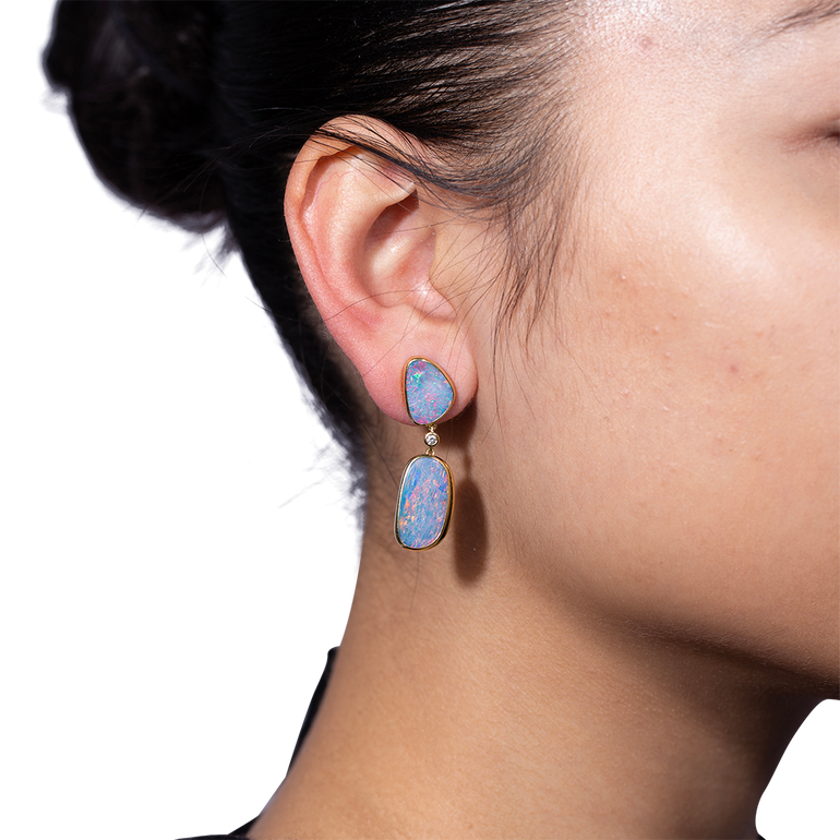 Yellow Gold Australian Opal Earrings