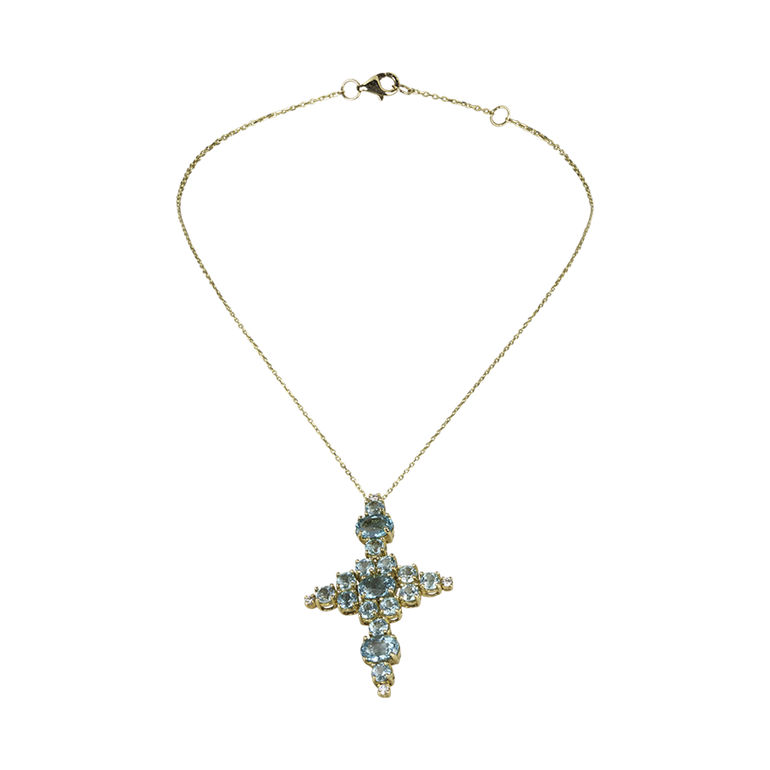 Necklace with pendant featuring 8.05 CT. T.W. blue apatite and 0.16 CT. T.W. diamonds.